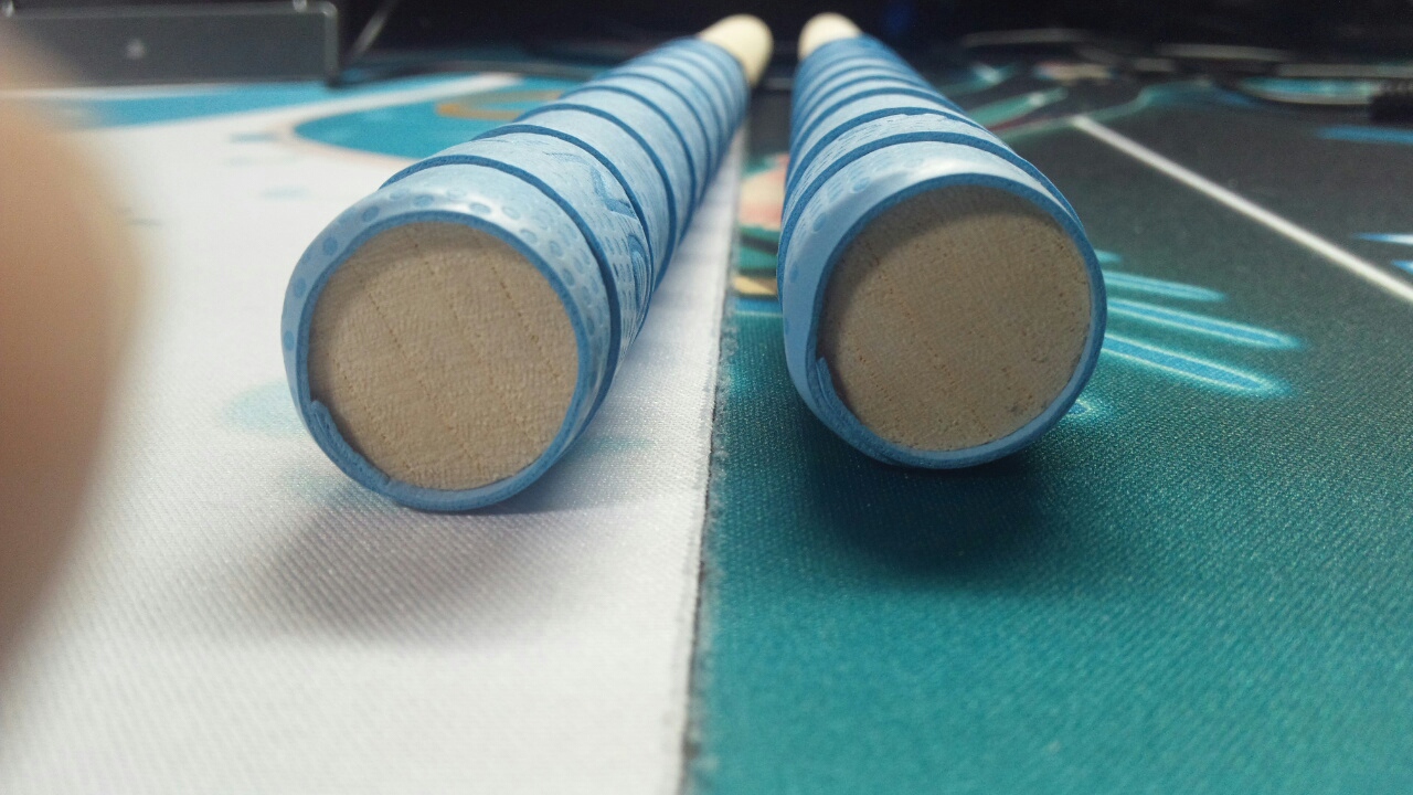Amazonでマイバチ買ってみた 太鼓の達人 2013年05月23日 比較的購入方法が楽なのでAmazonで販売されている太鼓の達人のマイバチを購入してみましたAmazonで購入できるようになるとはΣ(゚д゚lll)これから個人出品とか増えるのかな ■マイバチ詳細長さ 約350mm太さ 21mm重さ 一本約50グラム材料 朴木 形状 テーパー 使用グリップ YONEX Wet Super Grip太鼓の達人のロール用マイバチとしてお使いになられてはいか がでしょうか? 握りの太さ21mmのなので太鼓バチとして手にフィット! ロールがよく入るテーパー加工をしております。 反応性、反発性をバランスよく取り入れたバチです。特徴太鼓の達人のロール用マイバチとしていかがでしょうか。ロールがよく入るテーパー加工綺麗に仕上げたものですが手作り品反応性、反発性のバランス重視材質:朴木(ホオノキ)商品の詳細製造元リファレンス: sealche_Toy_002_bl 発送重量: 82 g ASIN: B00BWS2G7Y ランキング: 491(Amazonの商品説明から)使ってみた感想なんですがとても良いですマイバチ作る手間考えたらかなり良い現時点で色は三種類から選べます(2013/5/23現在)以下参考画像個人的にバチの先端がちょっとだけ不安でしたね筐体傷がつきそうで(^_^;)後でヤスリがけを行いましたバチはあまりツルってした感じではなかったです性能は変わらないけどね連打なんですが・・・入りやすいです主はハウスバチで最高8連打だけどこのバチは12連打はいりました上手な人はもっと入るでしょう補足的なものですがグリップ比べると巻く向きがちがいますwいやどうでもいいけどマイバチ欲しいけど作るのがちょっと無理作るのが面倒早く欲しい方(3日で届きました)綺麗な形のバチが欲しい方にお勧めの一品です参考までにヽ(^o^)ノシ [1回]PR