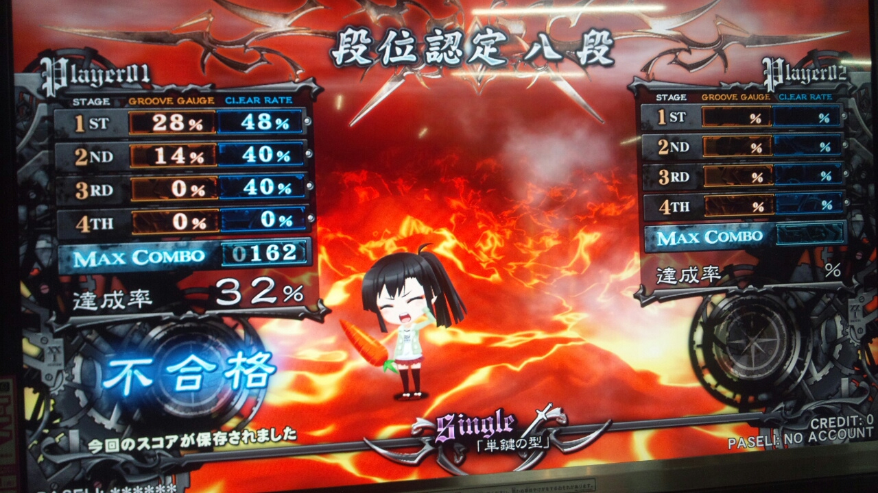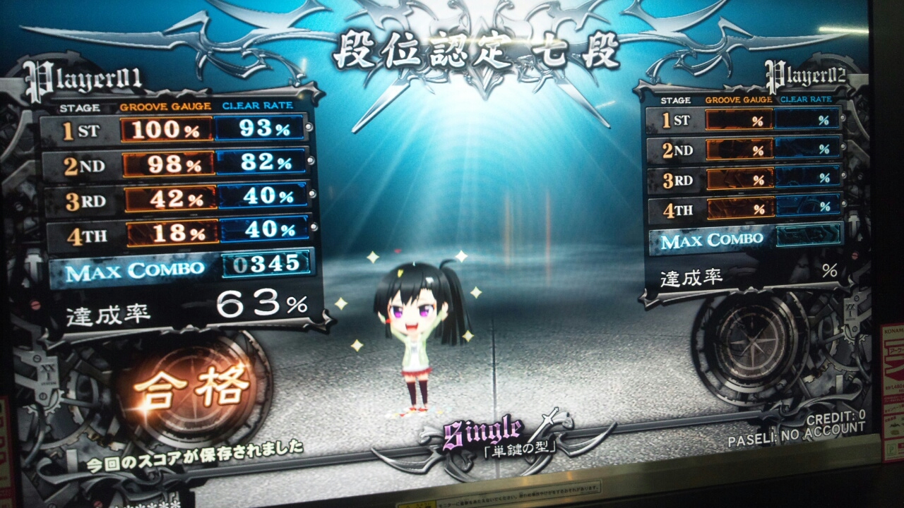 弐寺七段合格 弐寺段位合格試験 2014年03月25日 ついにこの記事を書ける時がやってきたもう一週間分の疲れ吹っ飛んでしまった(笑)約半年ぶりの合格ですそれではいつもの前回の記録から見てみましょう 前回の記録はトリコロなのであまり参考になりません。。もうデータ消えてるから閲覧不可能・・・~前回の記録〜beatmaniaIIDX202013年8月29日 SP 六段 合格達成率42%DJポイント総合1587SP1587DP0総プレイ回数185回SPプレイ回数185回DPプレイ回数0回今回の記録beatmaniaIIDX212014/03/24 SP七段合格達成率63%プレー回数 111 回DJ POINT総合3242ptSP3217ptDP25ptなるほどプレイ回数は七段になるまでかなりかかっている六段の総プレイ数が188なのでバージョン変わってSPADAになってから111回なのでかなり苦労した約半年ぶりの合格なのでこれも大変時間かかったのがわかる七段合格にはやはりサファリが一番敵縦連意識したら合格できたと思うけどやはりある程度回復しないと無理ゲーだと思うちなみにこのあと8段受けてみましたなかなか手強いと思うが三曲目までは行けたやっぱり縦連に強くなれば七段合格の近道になると思う(八段の為にも)なんだか八段のほうは七段合格よりすんなり合格しそうで恐いですが(笑)ちなみに太鼓の達人の段位は・・・五段から金五段になったけど六段難しい思ったけど弐寺の方が段位は簡単だと思うな(ぇさあ今日もLet''s音ゲー [2回]PR