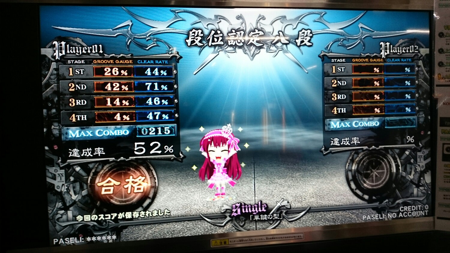 8段合格 弐寺段位合格試験 2014年09月14日 久しぶりに合格しました新作稼働前に合格できて良かったーではいつものいきます ~前回の記録〜beatmaniaIIDX212014/03/24 SP七段合格達成率63%プレー回数 111 回DJ POINT総合3242ptSP3217ptDP25pt今回の記録beatmaniaIIDX212014/09/14 SP七段合格達成率52%プレー回数 384 回DJ POINT総合7064ptSP7030ptDP34pt約300クレかけてますねw8段はなんといっても4曲目のラスト耐久ゲーでしたwあのラスト超えそうで超えない多分まぐれで超えた 次回作は目指せ10段!9段は次回作で必ず取りたいですではまたノ [0回]PR
