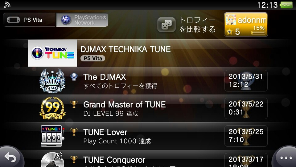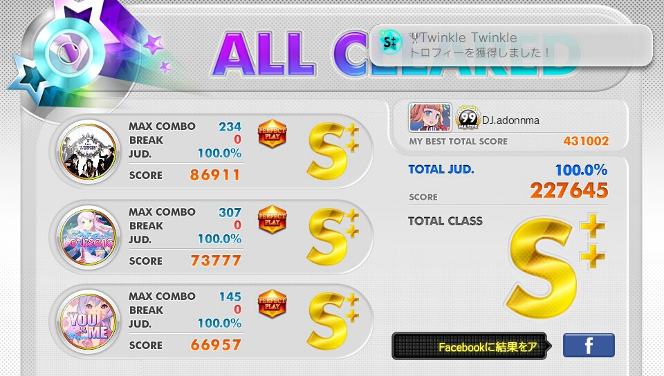 トロフィーコンプ!DJMAX TECHNIKA TUNE 音ゲー 2013年06月01日 ps VitaのゲームDJMAX TECHNIKA TUNEのトロフィーをコンプリートしました\(^o^)/ 連続99999コンボしないといけないというのは正直大変太鼓の達人のカウンターをカンストさせるよりプレッシャーもかかる一回でも途切れたらアウトなのでANTI BREAKを装備することをお勧めしますこれも大変だったなぁ自分がリズムに合わせやすい楽曲が一番いいと思いますあんまり関係ないけどパーフェクトを取れた 最後に・・・このゲームレベル上げした方がトロフィーコンプしやすいですね結構作業ゲーになってしまうある程度慣れないと取るのも一苦労皆さんもがんばってトロフィーコンプ目指してください(`・ω・´)ノシ [0回]PR