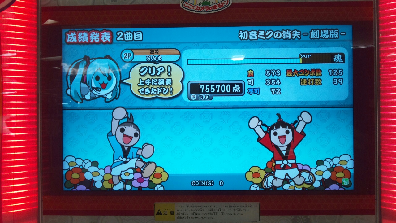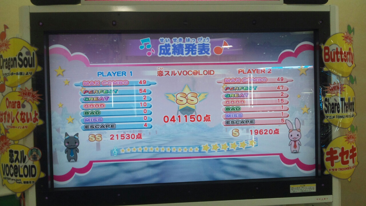 太鼓の達人消失裏クリアー 音ゲー 2013年12月26日 ついにアーケード版の太鼓の達人で消失裏クリアしました!いやー嬉しいね ギリギリのクリアなんだけどねwやってみて思ったけどクリア難易度はやはり成仏が一番今のところ難しいと思うフルコン・全良難易度は消失裏のほうが難しいかなちなみに今日はこんな収穫もやわらか戦車裏でたらめ繋がりすぎて自分でも驚いた(笑)もしかしたらフルコンも遠くないかも?!できたらタイコタイム裏でたらめフルコンしたいな最近ミュージックガンガンというものを始めました東方の曲クリアしたときは嬉しかったそれより前に白鳥をクリアしてしまう主(笑)魔理沙のほうがラス殺しひどいと思う調子に乗って今日は二丁持ち(DP)をしてみたノーツが1pが右に来て2pが左側にくるときついふつうモードなら二丁持ちでもできるけどむずかしいだと少し厳しい1pと2pのリズムが異なってくるから多少覚えゲーとなってしまうことも・・・まあこのゲーム結構リズムとりが覚えゲーなんだけどね(笑)最近音ゲーたのしんでるどんまさんであった [0回]PR