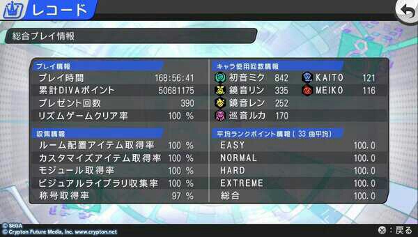 diva‐fあれから 音ゲー 2013年02月13日 あれから二週間後にvitaソニーさんから届きましたそれからdivaやりこみ中です 原因はデータが破損されていたみたいですそれもアカウントの認証でうまくいってなかった?ためなのか認証してない状態なら故障の状態が見られないつまりソニーさんはわからないですねダウンロードコンテンツを再ダウンロードしたら直りました無駄な二週間だったちなみにやりこみしていてついにヘルプアイテムなしオールパーフェクト達成しました!\(^o^)/ヘルプアイテムなしパーフェクトだと100%になりますしかしヘルプアイテムを利用したパーフェクトだと100%になりませんやはり工場長は楽しいし譜面ですでも真のボス曲はやっぱりネガポジでしたクリア回数105回目でようやくパーフェクト達成精度とりやすいのはネガポジだろうけど(^_^;)称号を100%にするだけですねエデット100時間するだけですがやはりつけっぱは勘弁って感じですあと雪みくさん可愛かった( 〃▽〃)それでは本日はここまでノシ(* ̄▽ ̄)ノ~~ ♪おまけあれぇ?(^_^;)只今ケーキ99個購入の為のやりこみ中ケーキ全部で・・・2000万・・・だと・・・(--;)達成しそうなら動画でも・・・ [0回]PR
