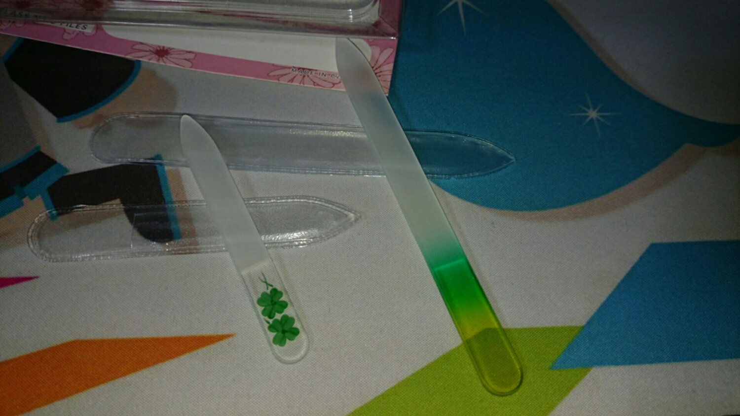ガラス製爪やすり 商品チャンネル 2015年01月23日 爪切りって実は結構爪に負担をかけているらしいです。そこでいろいろと調べたところ爪をやすりで削るというのが良いと分かりました。 爪は三層になっているらしくてなんでも爪切りを使用すると二層になってしまったり、それが原因で爪が割れたりするらしいです。爪に負担をかけず、なおかつ綺麗に仕上げるにはやすりで削るのがいいということです!でもう一つ重要なことがあります。いかに道具を衛生的にしようできるのかということ。なのでガラス製をしようすれば良いと結論です。なぜガラスがいいのか・・・水洗いしてもさびない熱湯で殺菌できる消毒液など使用可能衛生面以外にも・・・仕上がりが滑らかになる細かな細工が効くやすり面のすり減りが少ないので長期的につかえる(爪切りだと研いだりも出来るらしいが・・・)その他爪やすり以外の用途に使用できる・・・・?!つまりどういうことだってばよ・・・結論からいうとプラスチックを削ったりするのに超便利らしいです。たとえばプラモデルとか!ということでガラス製の爪やすりというのは良いこと尽くしでした(^^♪いやいやメリットもあるんじゃ(・・?落としたら欠けたりする(やっぱりガラスなので)黒板を引っ掻いた時の音が稀にあるらしい(正しく使用すれば大丈夫だと思う)では削りかたですが爪に対して斜め45度の角度で一方方向に削るらしいです。動画などを参考にするといいとおもいます。今回購入したものは二枚セットでした。 ちなみに爪表面を綺麗にしたいという方はバッファというものがあります。100円ショップで購入できますので興味がある方は購入してみるといいとおもいます。 こちらはガラス製ではないので使い捨てです(笑)その他にも爪も保湿する方が良いとか!爪を整えるのって奥が深いなぁ~ [0回]PR