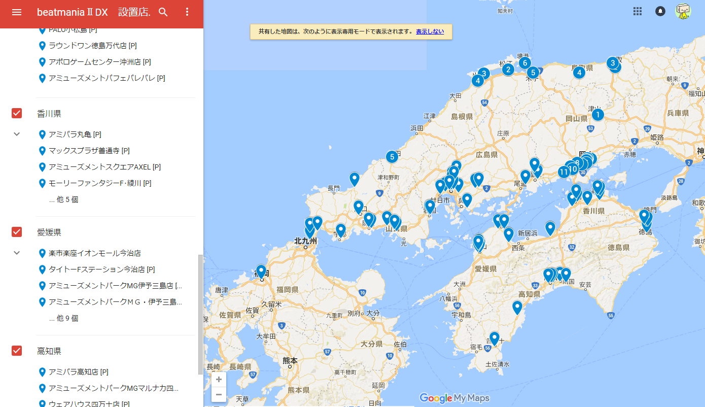 beatmaniaⅡDXの設置店舗の地図作成中 beatmania IIDX 2017年04月27日 beatmaniaⅡDXの行脚をするけども、Google Mapで検索するのはいいけど設置店舗がすぐ知りたいなぁ・・・と思いました。なので、作りました。厳密に言えば作成中ですが、中国四国は作れました。なので公開しようと思います。 続きめう! [0回]PR